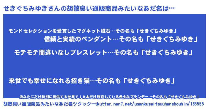 | 肩書あだ名 | 『せきぐちみゆき大佐』 |