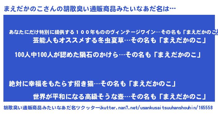 | ヘコむあだ名 | 『つくし』『まえだかのこ(笑)』 |