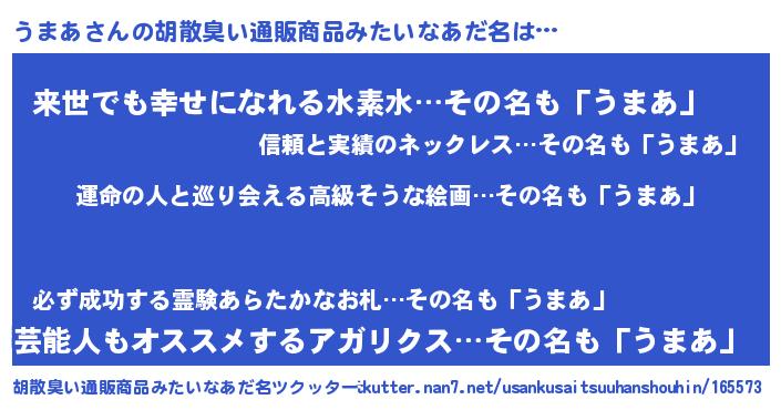 | 意味不明あだ名 | 『ヨモギ科うまあ属』『永久保存うまあ』 |