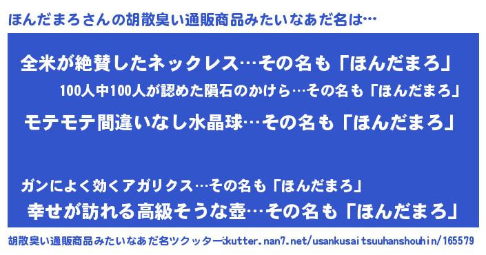 | 男性向けラノベタイトル風あだ名 | 『転生したらほんだまろだった件』 |