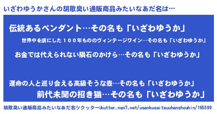 | ヘコむあだ名 | 『いざっぺ』『いざわゆうか(苦笑)』 |