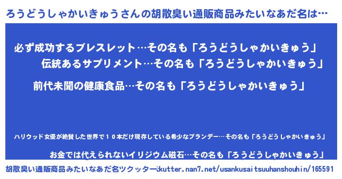 | 伝説のあだ名 | 『古文書に記された暗殺者ろうどうしゃかいきゅう』 |