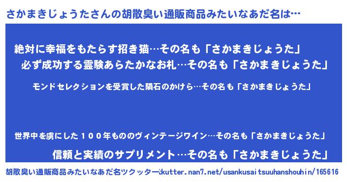 | ヘコむあだ名 | 『さかまきじょうた(遠い目)』『さかお』 |