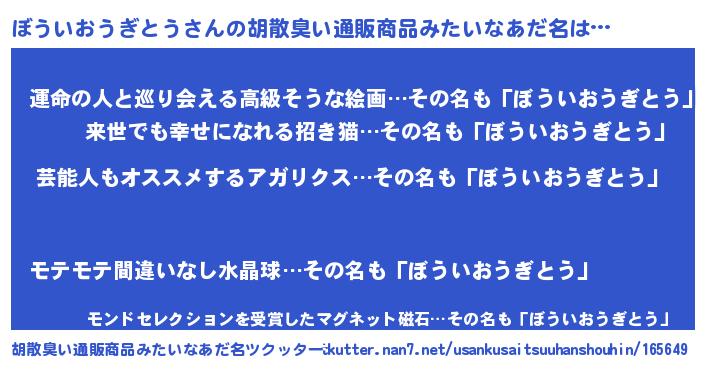| 意味不明あだ名 | 『自称ぼういおうぎとう』 |