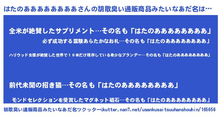 | 意味不明あだ名 | 『住所不定無職はたのああああああああ(95歳)』 |
