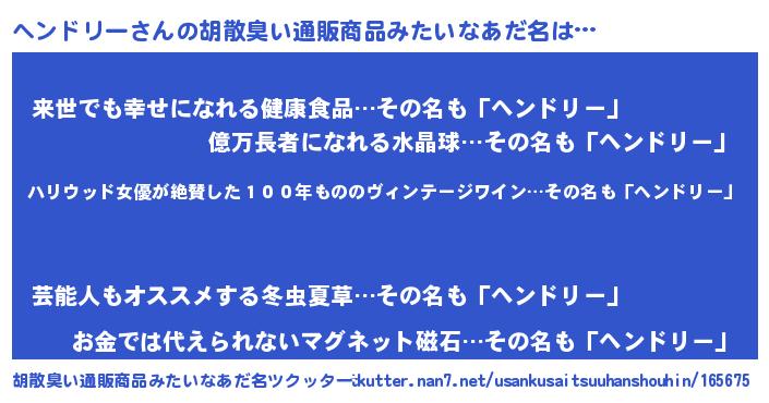 | ヘコむあだ名 | 『ヘンドリー(笑)』『ヘンにゅー』 |