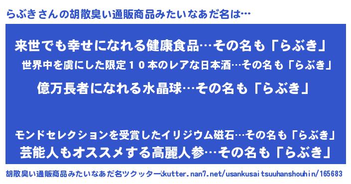 | ヘコむあだ名 | 『らぶもー』『らぶき(笑)』『らぶお』 |