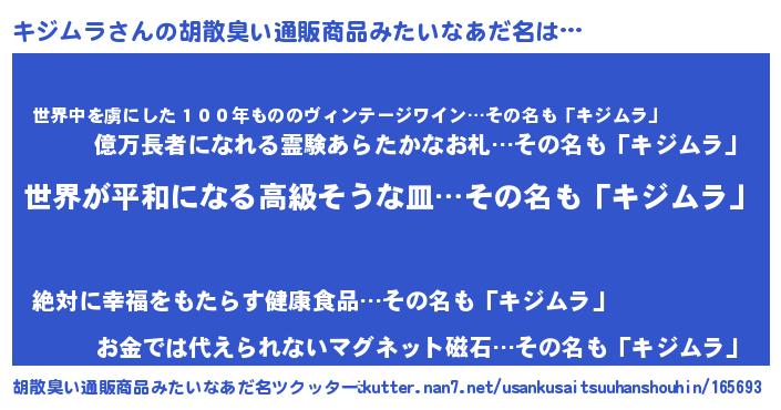 | 欧米人風あだ名 | 『キジムラ・ステッグマイヤー』 |