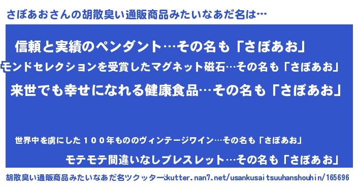 | 欧米人風あだ名 | 『トリンドルさぼあお』 |