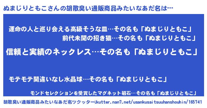 | 意味不明あだ名 | 『とにかく怪しいぬまじりともこ』 |