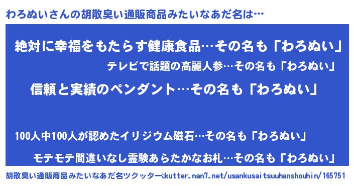 | 意味不明あだ名 | 『とにかく怪しいわろぬい』 |