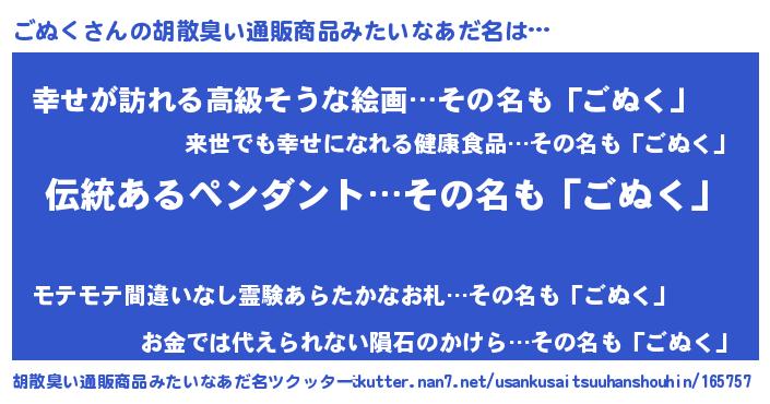 | 意味不明あだ名 | 『とにかく怪しいごぬく』 |