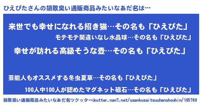 | 意味不明あだ名 | 『ひえぴたフォーエバー』 |