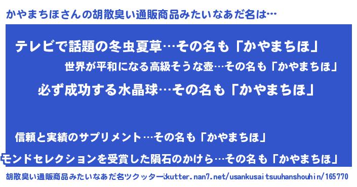 | 意味不明あだ名 | 『ペロリンかやまちほ』『自称かやまちほ』 |