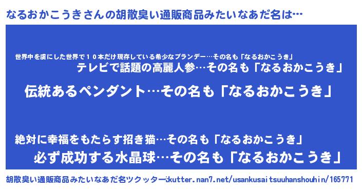 | 意味不明あだ名 | 『とにかく怪しいなるおかこうき』 |