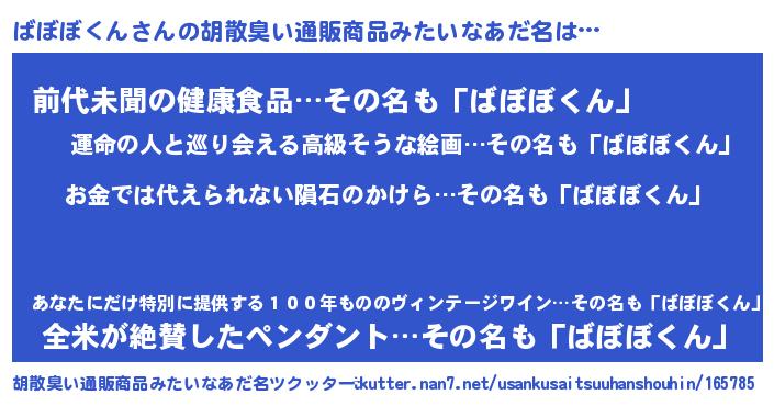 | ヘコむあだ名 | 『ばぼぼくん(苦笑)』『ばぼ太郎』 |