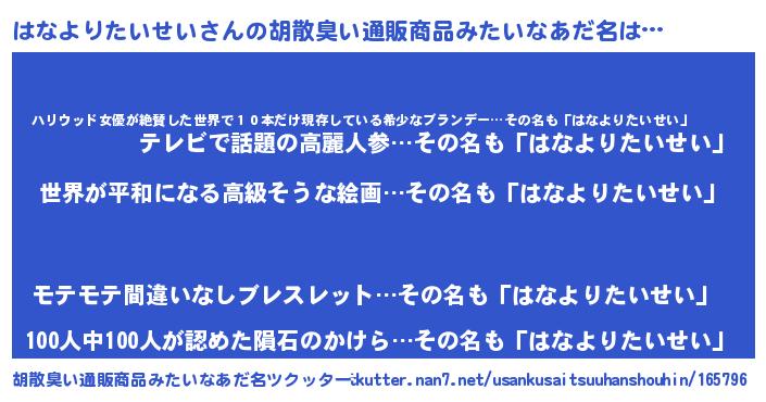 | 意味不明あだ名 | 『はなよりたいせいフォーエバー』 |