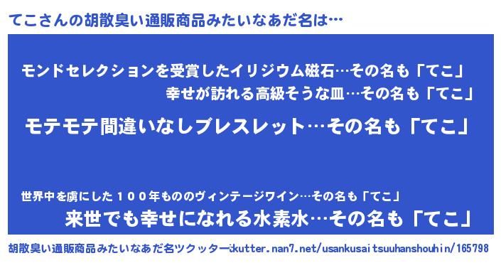 | ヒーロー風カッコイイあだ名 | 『スーパーテコ』『友情の使者てこ』 |