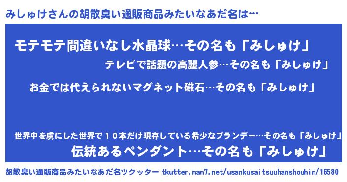 | 女子向けラノベタイトル風あだ名 | 『みしゅけ恋絵巻』『みしゅけ様がみてる』 |