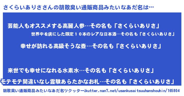 | 意味不明あだ名 | 『さくらいありさフォーエバー』 |
