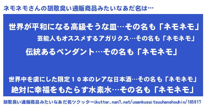 | 意味不明あだ名 | 『とにかく怪しいネモネモ』 |