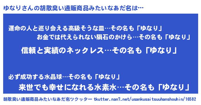 | 男性向けラノベタイトル風あだ名 | 『ダンジョンにゆなりを求めるのは間違っているだろうか』 |