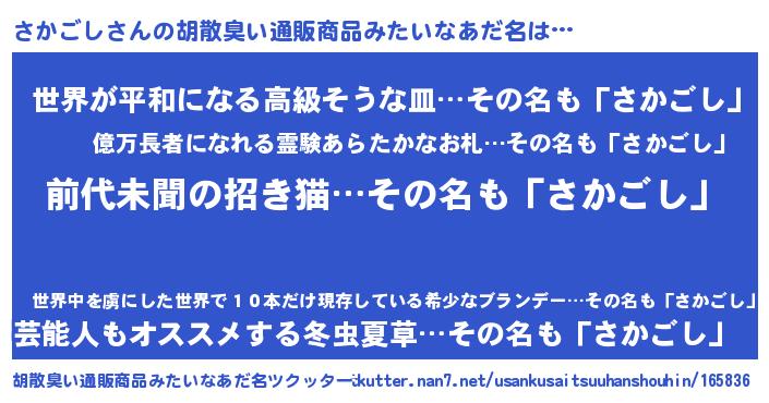 | ヘコむあだ名 | 『さかごし(笑)』『なまこ酢』 |
