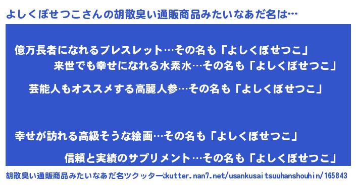 | 意味不明あだ名 | 『自称よしくぼせつこ』 |