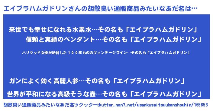| 意味不明あだ名 | 『住所不定無職エイブラハムガドリン(13歳)』 |