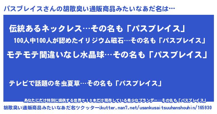| 男性向けラノベタイトル風あだ名 | 『パスブレイスの憂鬱』 |
