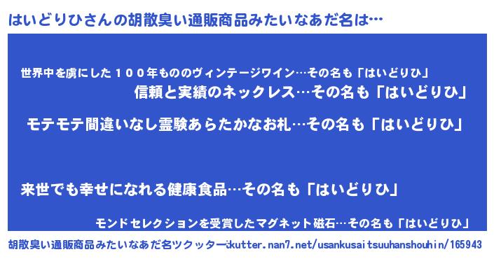 | 肩書あだ名 | 『はいどりひ上級大将』『はいどりひCEO』 |