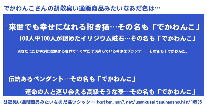 | 男性向けラノベタイトル風あだ名 | 『この素晴らしい世界にでかわんこを!』 |
