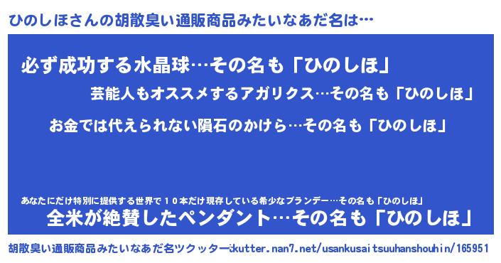 ひのしほさんの胡散臭い通販商品みたいなあだ名をツクッター!