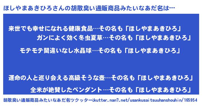 | 意味不明あだ名 | 『ペロリンほしやまあきひろ』 |