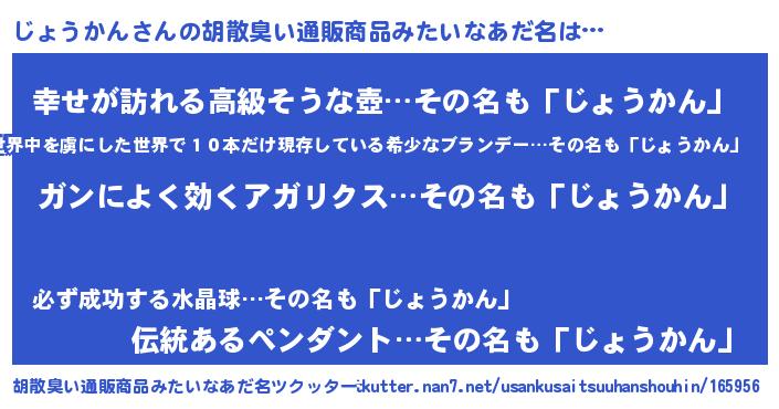 | 意味不明あだ名 | 『自称じょうかん』『ペロリンじょうかん』 |