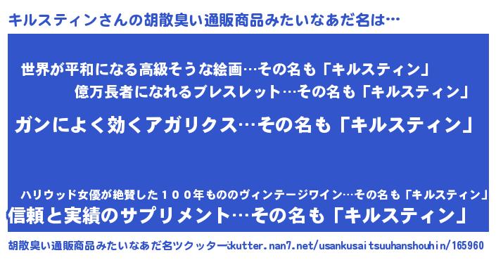 | 女子向けラノベタイトル風あだ名 | 『キルスティンなんてお断りですっ。』 |