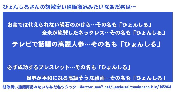 | 意味不明あだ名 | 『自称ひょんしる』『ペロリンひょんしる』 |