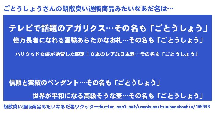| 伝説のあだ名 | 『秘められし忍者ごとうしょう』 |