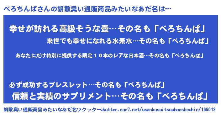 | 欧米人風あだ名 | 『ダレノガレべろちんぱ』 |