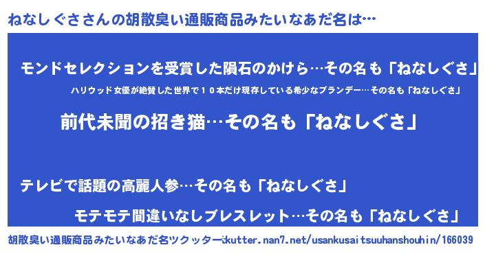 | ヘコむあだ名 | 『ねなしぐさ(笑)』『ねなにゅー』 |