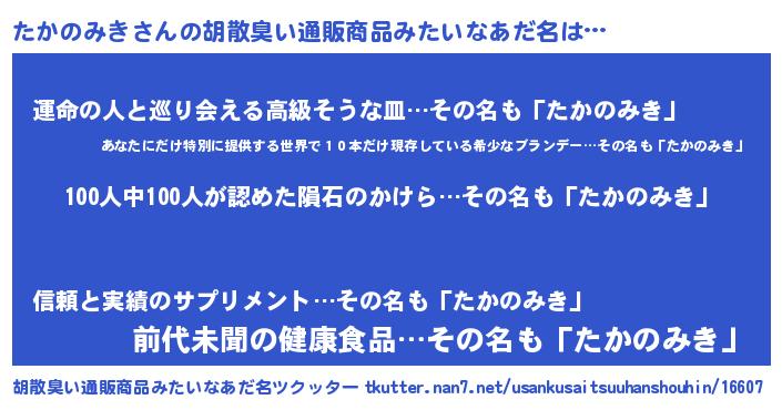 | 欧米人風あだ名 | 『たかのみき・ステッグマイヤー』 |