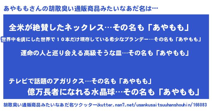 | ポケモン風あだ名 | 『アヤモダネ』『ヒアヤモモ』 |