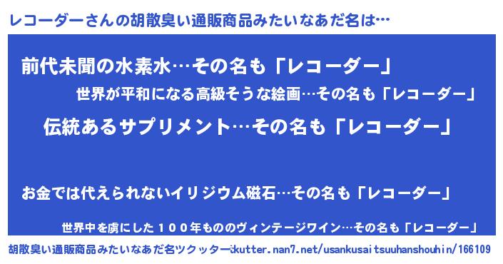 | 意味不明あだ名 | 『とにかく怪しいレコーダー』 |