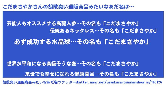 | 恥ずかしいあだ名 | 『プリティーこだまさやか』『こだちん』 |