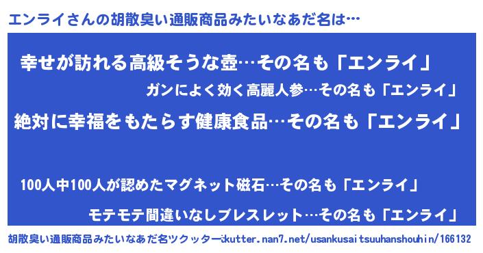 | ヘコむあだ名 | 『エンライ(爆)』『つくし』『エンお』 |