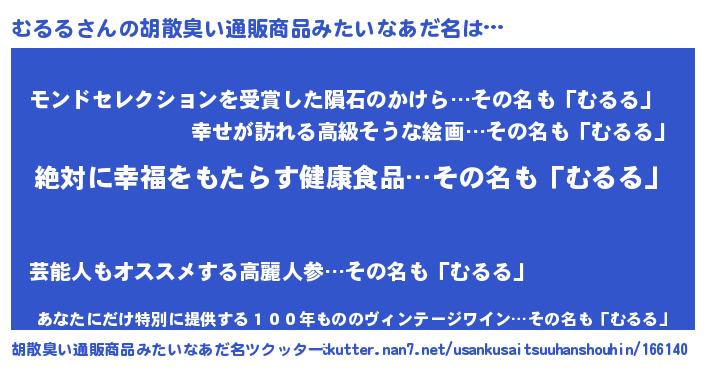 | ヘコむあだ名 | 『むるる(笑)』『酢こんぶ』『むるお』 |