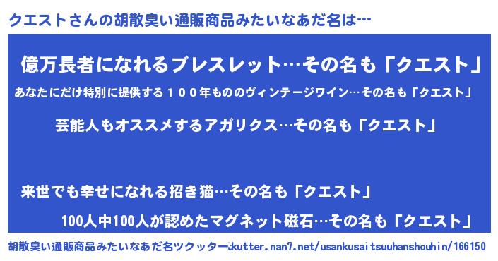 ヘコむあだ名 | 『クエにゅー』『クエスト(笑)』 |
