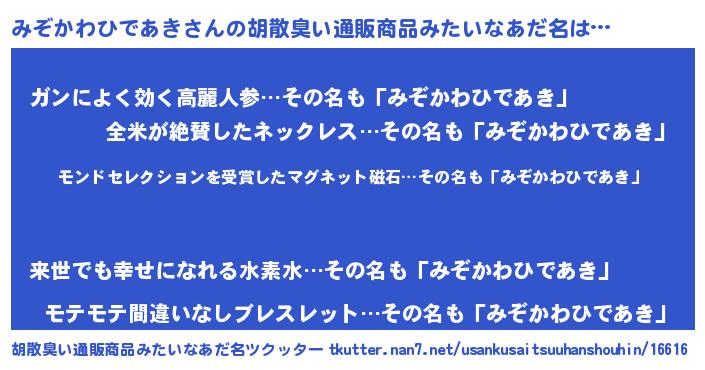 | 意味不明あだ名 | 『眠気覚ましガムみぞかわひであき味』 |