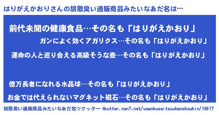 | 意味不明あだ名 | 『はりがえかおりフォーエバー』 |