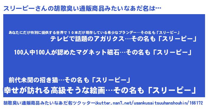 | ヒーロー風カッコイイあだ名 | 『正義の使者スリーピー』『仮面スリダー』 |